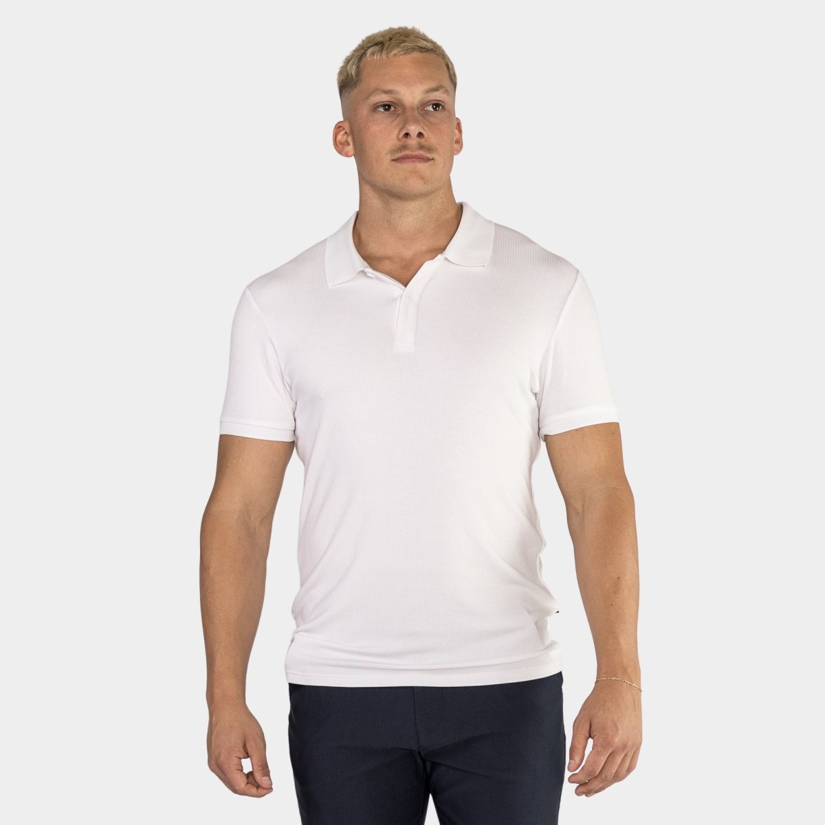 Poloshirts waren noch nie so bequem. Das Performance Ribbed Polo für Herren in Weiß hat eine figurschmeichelnde, sportliche Passform und ein leichtes, strukturiertes Viskose-Stretchgewebe für ultimativen Komfort. Das vielseitige Poloshirt mit anspruchsvollem Stil für professionelles Tragen und Leistung für sportliche Aktivitäten