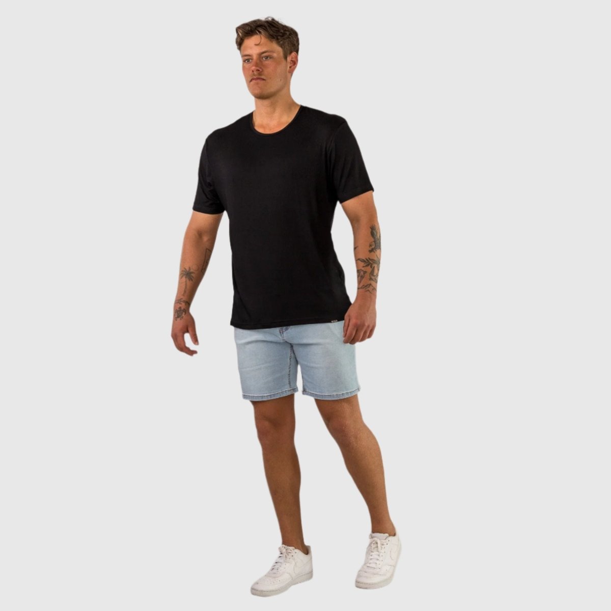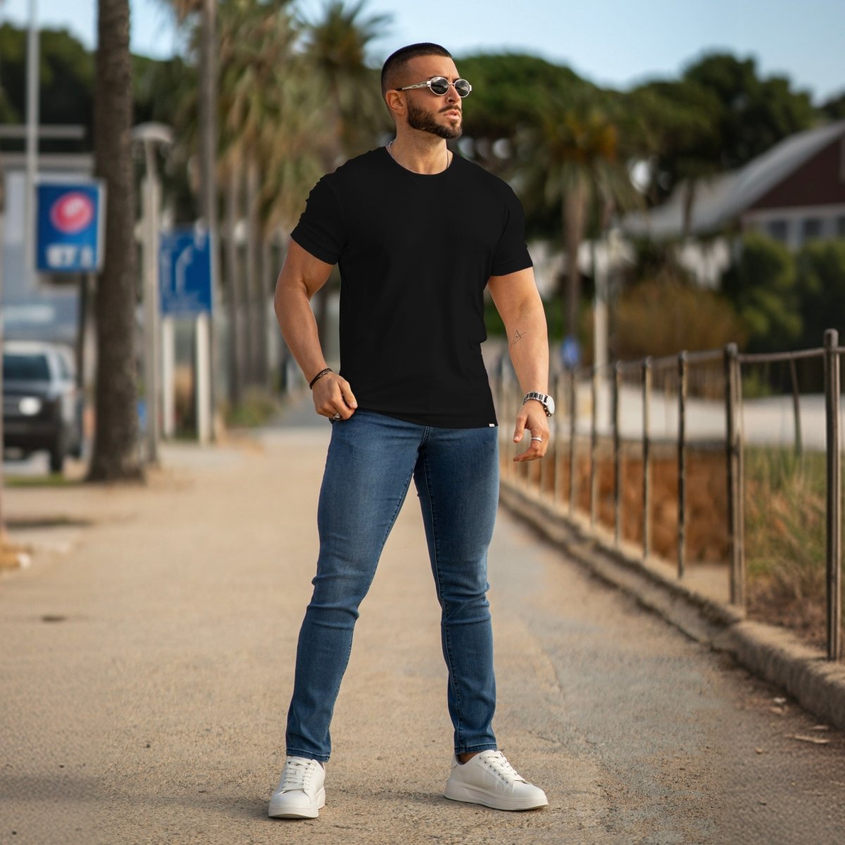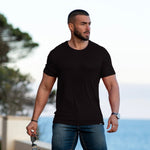 Black Muscle Fit Casual T-Shirt Stretch Breathable Ribbed Workout and Casual