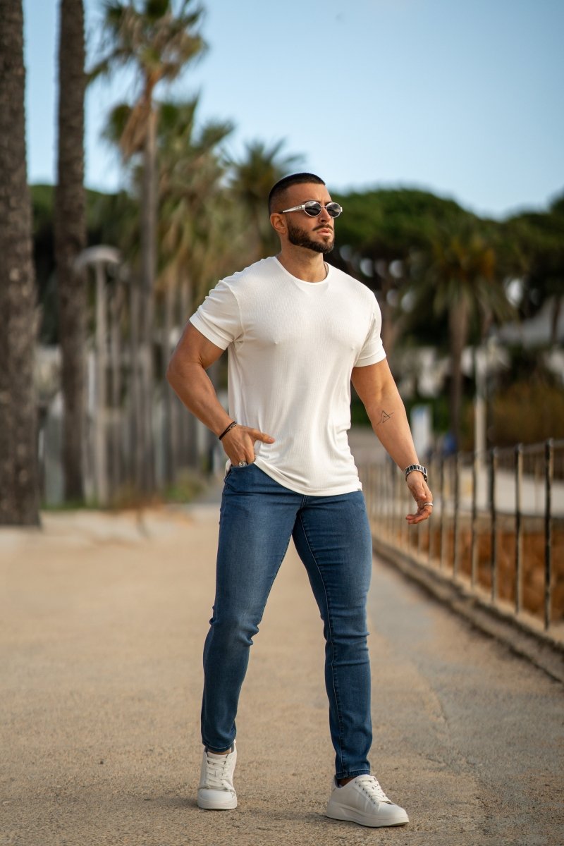 Mencari potongan kemas dan berukir yang menonjolkan fizikal anda tanpa mengorbankan keselesaan? Kemeja-T Rayon Berjalur Kojo Fit dalam Warna Putih adalah gabungan sempurna estetika moden, fabrik premium dan serbaguna sepanjang hari.