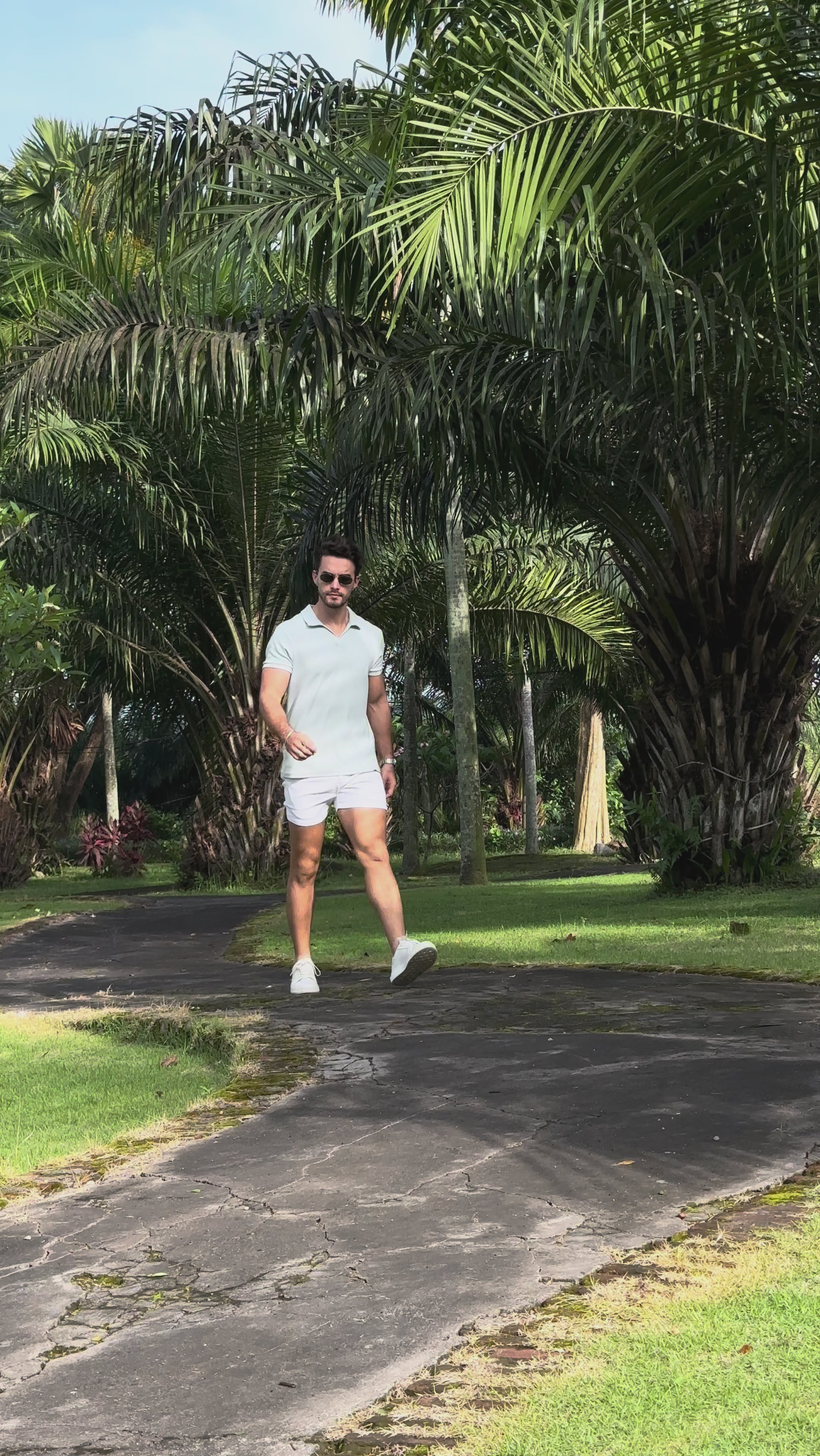 The Men's Open Collar Rayon Knit Polo in Linen Blue has a physique flattering athletic fit, with a deluxe Rayon stretch fabric for ultimate comfort in a modern style featuring a buttonless open collar
