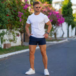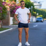 ✓ Style - Navy Dark Blue Chino shorts with shorter leg length & versatility for dressing up or casual wear. Pair with an essential t-shirt or a button-up shirt so a classy and comfortable look.