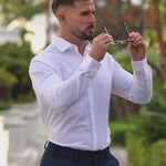 - Adjustable Cuffs with Cuff Link Hole (Wear buttoned up or with Cuff Links)