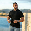 ✓ Ajuste Atlético - Ajuste stretch sob medida otimizado para homens atléticos com mangas ajustadas, espaço suficiente no peito, afunilando para uma cintura fina com comprimento ligeiramente alongado.
