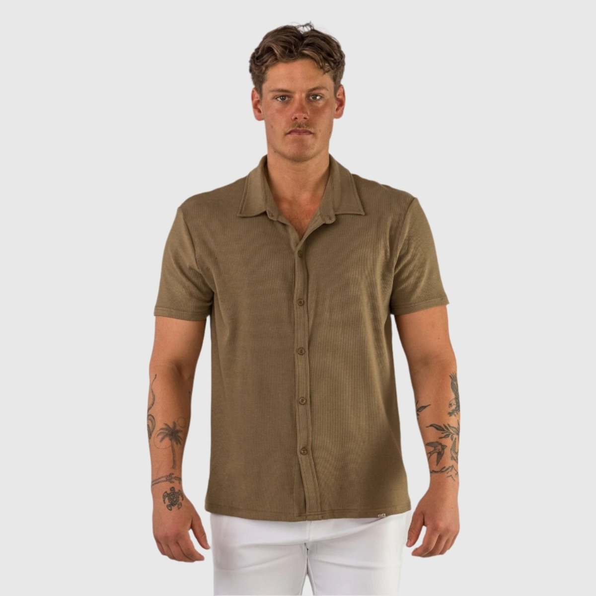 Rayon Stretch Kortärmad Skjorta - Taupe